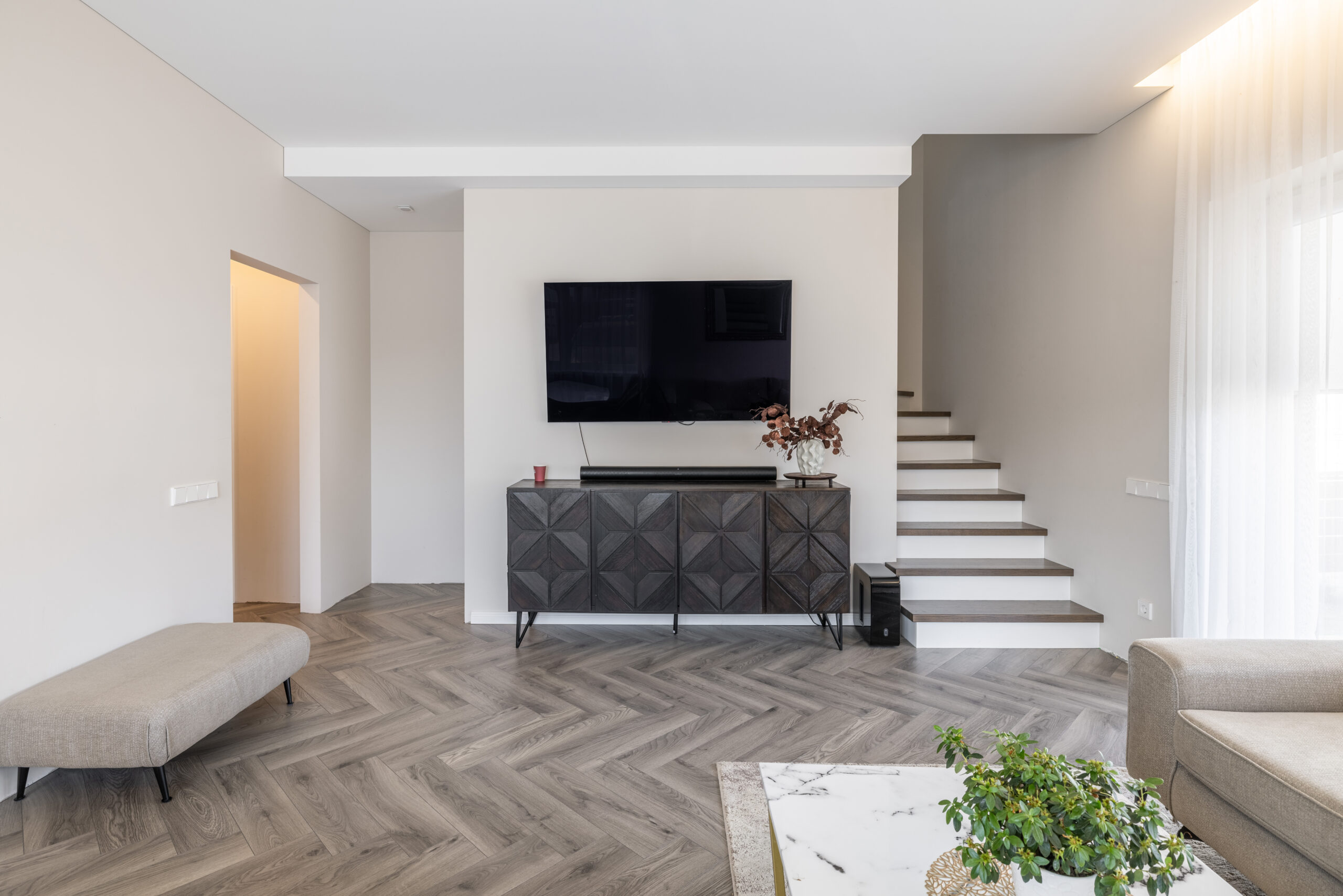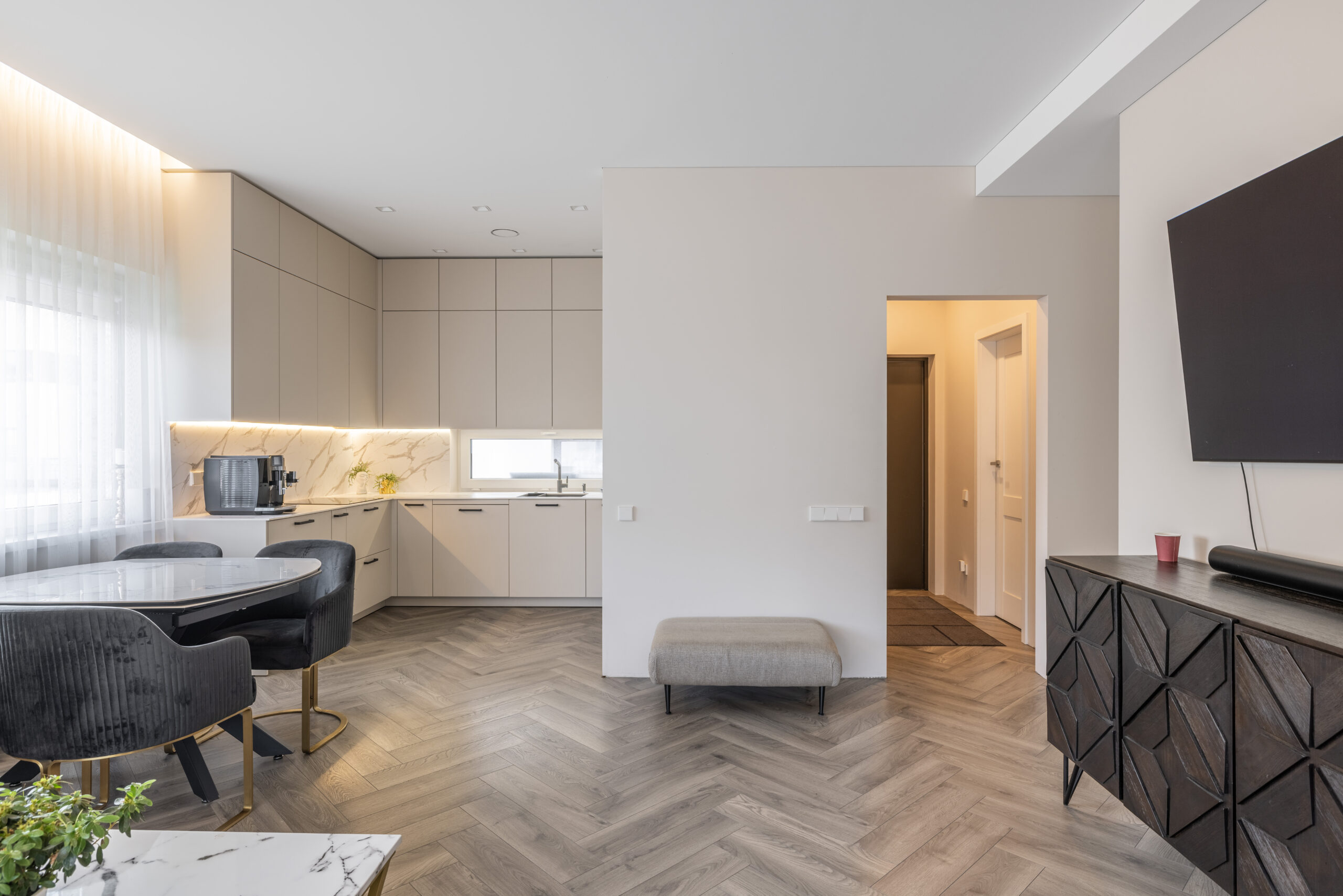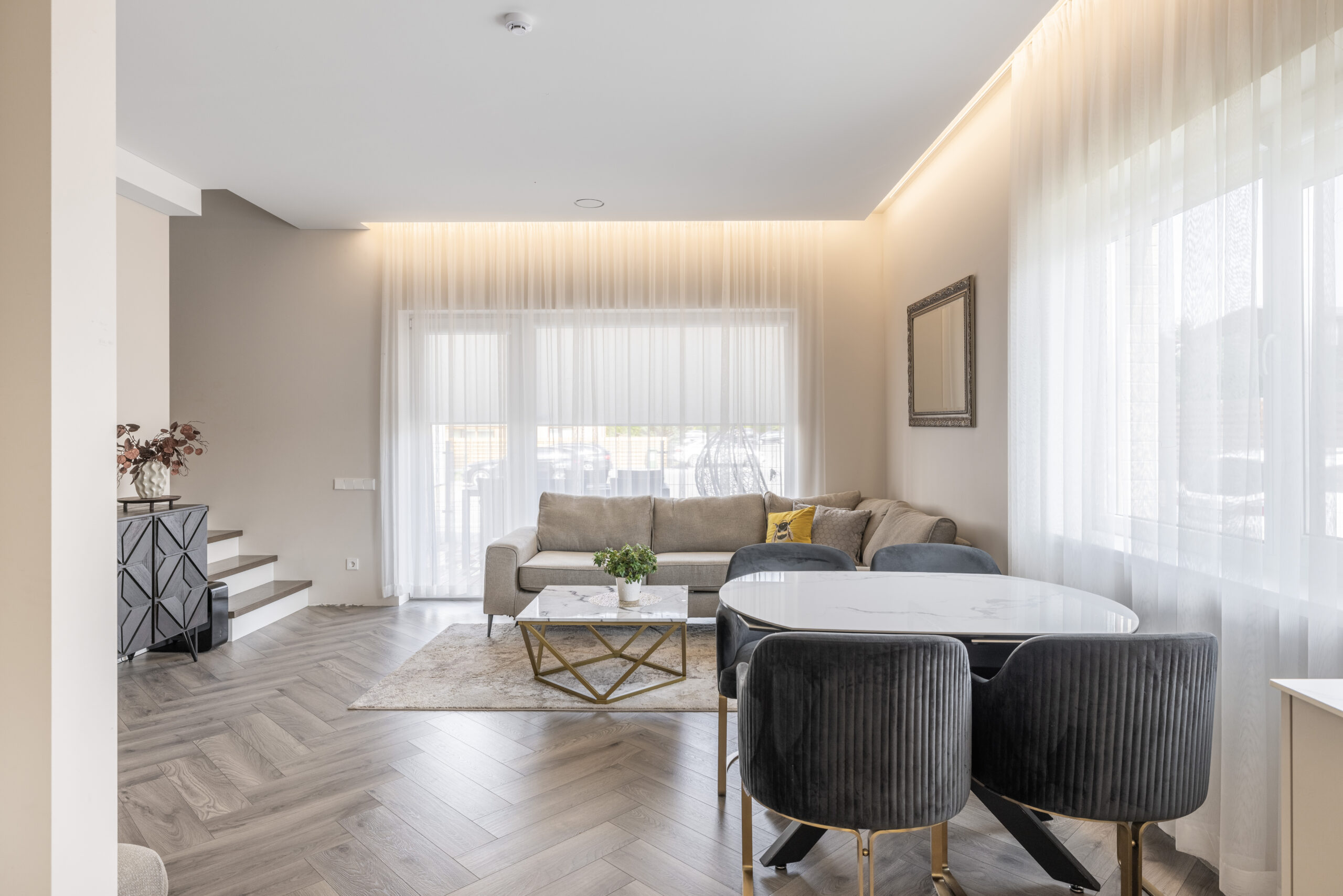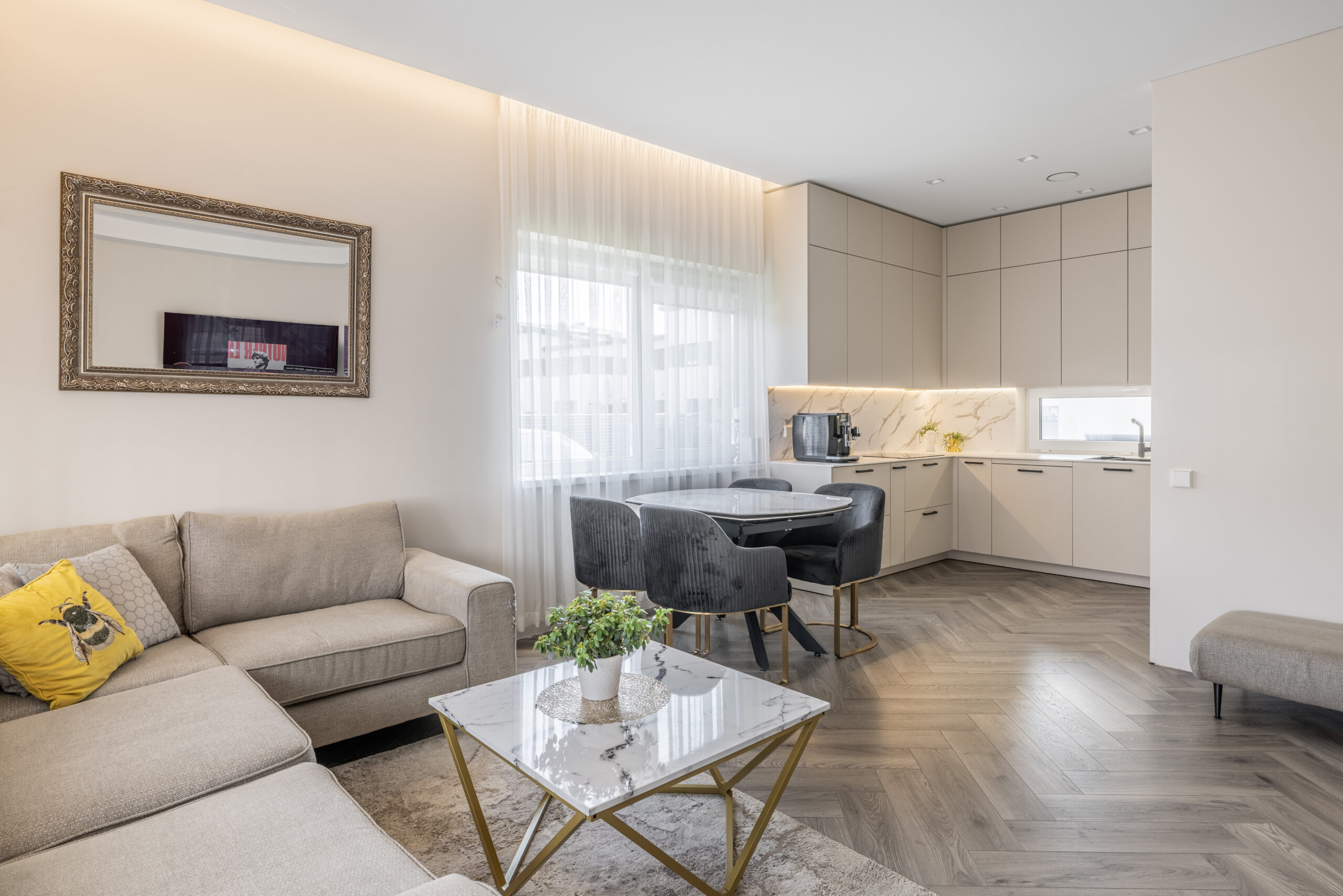 Kambarių skaičius: erdvi svetainė su virtuve, 3 miegamieji kambariai